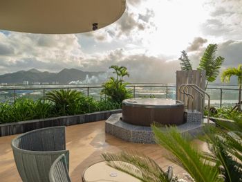 Отель очень большой и красивый, наша комната была с потрясающим видом на океан и ванной на балконе — впечатления незабываемые. Всё оформлено стильно, бассейн на 22 этаже просто шикарный, особенно на закате.