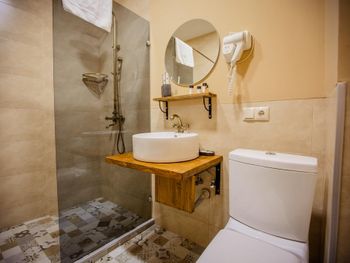В номере нет чайника и кондиционера. Напор воды в ваннах на третьем этаже почти отсутствует, мылись под тонкой струей (у друзей на втором был норм). За дополнительной туалеткой ходили сами — при въезде был один рулон (телефона в номере тоже нет). Фен выключается через пару минут после включения от перегрева. Наконец, оплачивали номер с балконом, но балкона не было.