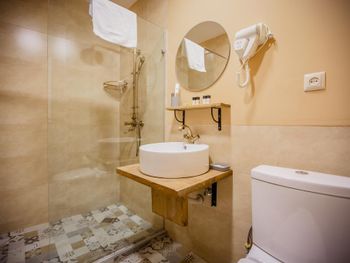 Кровати, подушки и одеяло удобные. Симпатичный интерьер самого отеля. Довольно чисто. Полотенца и постель довольно новые, приятно использовать. Нормальный душ, хороший напор воды. Тепло. В ванной греет змеевик, на нем отлично сохнет, если что-то нужно высушить. Завтрак неплохой, вполне есть из чего выбрать.