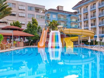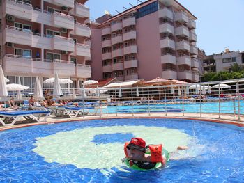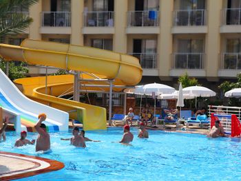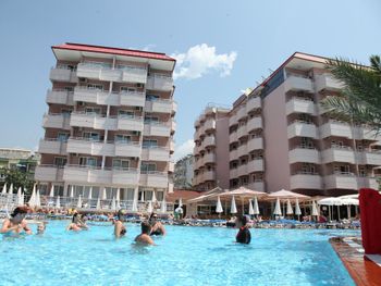 Современный отель Kahya расположен вокруг бассейнов с водными горками всего в 100 метрах от знаменитого пляжа Аланьи Клеопатра. К услугам гостей хорошо оснащенный тренажерный зал, оздоровительные процедуры и детская игровая площадка.