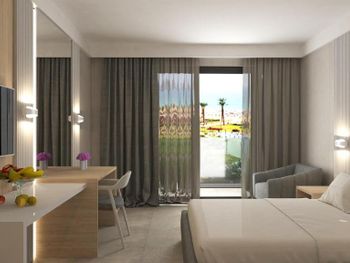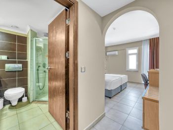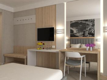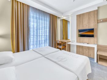 Странный персонал , попросила тихий номер , дали номер , где стоит какой-то гул ; пришла на ресепшн, морочили голову , что придёт ремонтник и что-то отремонтирует ; сказала , что подожду его здесь на ресепшене Поняв , что я не уйду и жить в этом номере не буду ; поменяли номер , через 15 мин моего ожидания Еда в отеле так себе ; на завтрак все заставлено одним и тем же сыром типа брынзы , нарезанным разными способами ; и так во всем , так создаётся иллюзия большого выбора. Мало лежаков у бассейна всем не хватает . Маленький бассейн для такого количества номеров в отеле . Номер меньше чем на фото Санузел крошечный
