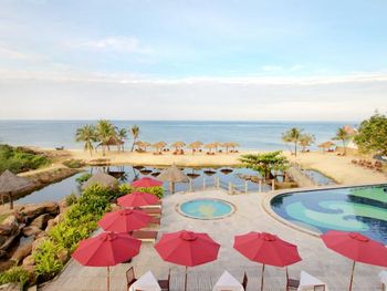 В баре около бассейна цены высокие и не окончательные: добавляют 10% НДС и еще примерно 5 % за обслуживание (во Вьетнаме только еще раз в Хошимине было, когда в ресторане набросили 10% НДС к цене при расчете - в остальных случаях цены указаны окончательные). В море несколько раз больно щипался планктон.