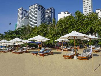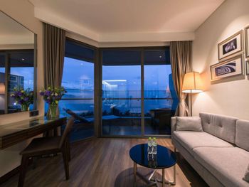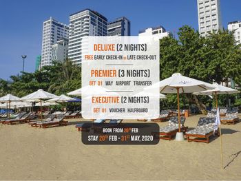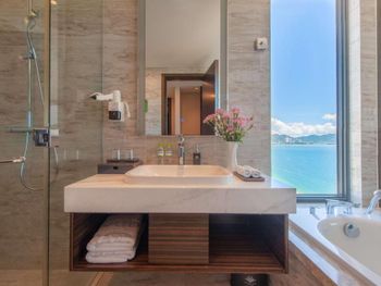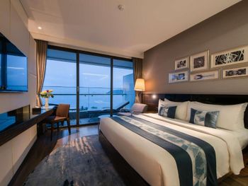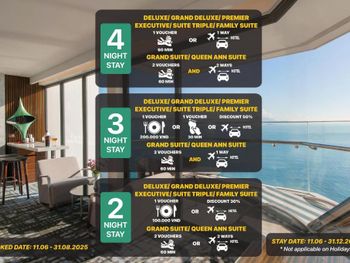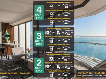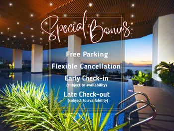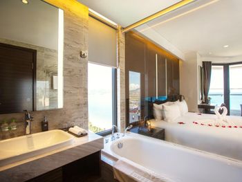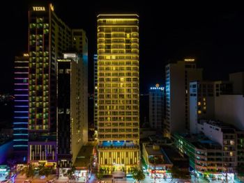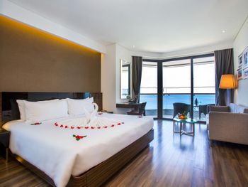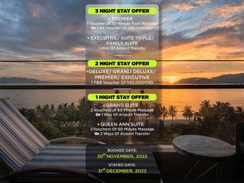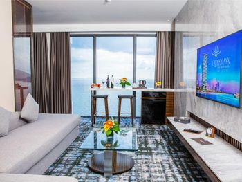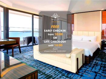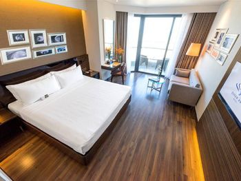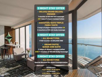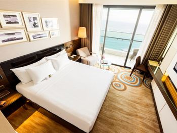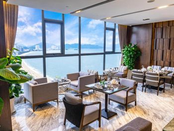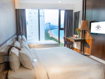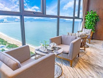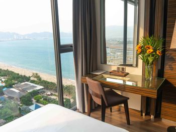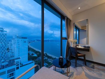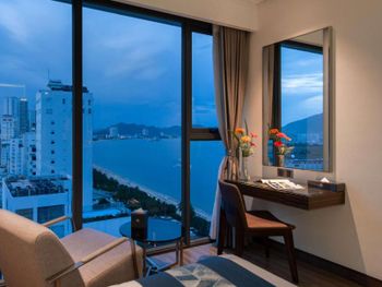 С самого начала только положительные эмоции.Встретили в аэропорту с табличкой, бесплатный трансфер.На ресепшене быстрое заселение.Бесплатное повышение уровня номера.Ребята говорят и на английском и на русском языках.Номер большой .Панорамные окна с видом на море.на балконе шезлонг,стул и столик. В номере есть всё необходимое ,если нужен утюг, можно попросить на ресепшене.Пляж через дорогу, на ресепшене нужно взять ,по ключам от номера, полотенца и ваучер на 3 часа пользования лежаками и если повезёт зонтом . Многие туристы конечно идут очень рано ,чтобы занять лежаки под зонтом,но это не про нас.Так как можно взять в аренду и сапы и лежаки на соседних пляжах.Завтраки отличные и разнообразные.Все проблемы решаются моментально.В первый день был очень слабый напор воды из крана душа и ванной. Я решила,что это минус 25 этажа,но обратилась на рецепшн, через 10 минут все починили. Отель находится в 2-2.5 км от центра Нячанга,что делает пляж этого отеля не многолюдным. До центра города пешком минут 30-40.Или на такси 5 минут. PS.На ресепшене при заселении просят депозит 100 долларов или паспорт,выдают вам квитанцию с переписанными номерами купюр.Так что при выезде получите именно свои деньги