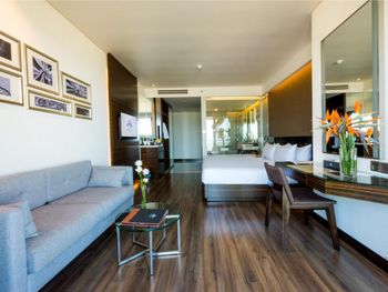 Отель бесплатно повысил нам категорию номера до самого высшего. В результате нам достался роскошный номер с джакузи, душем,тремя раковинами и двумя туалетными комнатами. Также отличная кровать, диван, кресла, бурная стойка и балкон с отличным видом на океан! Идеально чисто, завтраки неплохие, сотрудники приветливые. Мы остались очень довольны!