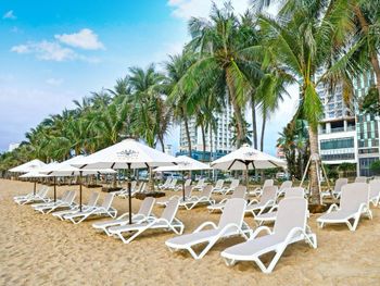 Хороший персонал. Разнообразный завтрак. Просторный номер, с ванной и душем, и террасой на 24 этаже. Вид очень красивый. Было много плюшек, и довезли и увезли с аэропорта бесплатно. Дали несколько ваучеров на бесплатный массаж. Отличное расположение отеля, море через дорогу. Рядом много кафе, есть с русской и снг кухней. Идеальный отель для пляжного, расслабляющего отдыха.