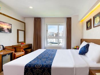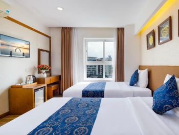 Отличный отель для экономных туристов. Расположен через дорогу от пляжа. Напротив переход. Рядом Луизиана:живая музыка,хорошая кухня. Персонал на высоте, особенно администраторы.Очень профессиональная девочка Ха. Спасибо большое! . Бассейн на 16 этаже, причём работает с 6 утра до 10 вечера! Завтраки нормальные (для Вьетнама). За 2 недели не надоели. Всё равно мы покупали всегда фрукты, соки, морепродукты.... Всё дёшево и вкусно!!!! Совет:бронируйте номер выше 7 этажа и обязательно с балконом на море!!!! Спасибо за прекрасный отдых, спасибо, милая Ха!!! 🙏