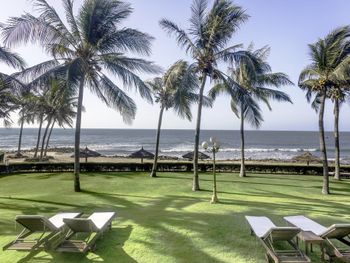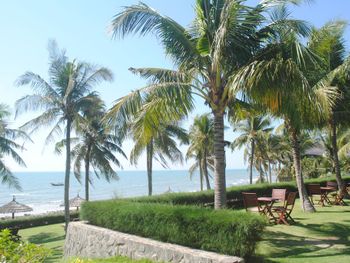 Жили в бунгало с видом на сад и бассейн, у нас все было вполне новое. Территория отеля очень зеленая и красивая, нет ощущения что все закатали в плитку. Пляж хороший для детей, вход очень мелкий. На пляже постоянно волны и ветер, как и везде в Муйнэ. Пляж на самом краю, но зато очень чистый, тут не ловят рыбу, почти нет посторонних и нет мусора как на других пляжах. Еда вкусная и ее много, но и цена хорошая по сравнению с кафешками поблизости, но там и кормят местами попроще. Отель на краю, рядом практически ничего нет, даже прокат байков в магазинчике через дорогу не работал, можно было только пройтись по пустынной улочке до двух кафе через дорогу, они же магазинчики. По выходным приезжает много вьетнамцев, видимо это у них такие туры. С ресепшена можно вызвать такси чтобы съездить в город если там что-то нужно.