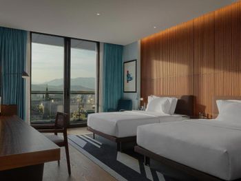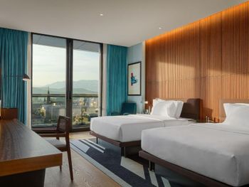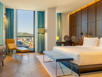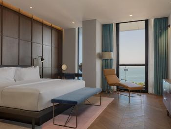 Все номера отеля Le Meridien Batumi оформлены в спокойных тонах и оснащены кондиционером и системой отопления. В каждом номере среди удобств платяной шкаф, гостиный уголок и мини-бар. В собственной ванной комнате предоставляются бесплатные туалетно-косметические принадлежности, халат, тапочки и фен. Полотенца и постельное белье входят в стоимость проживания. Во всех номерах есть балкон с видом на море.