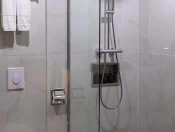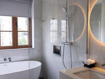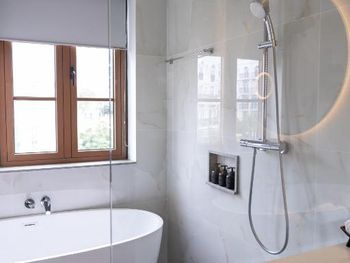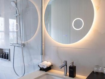 — Всё очень удобно, даже если на первый взгляд что-то необычно: например, раковина с зеркалом вынесены отдельно, а между душем и туалетом нет перегородки — но это совсем не мешает.