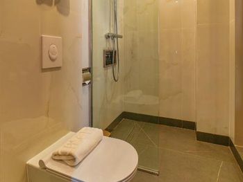 Отель расположен очень удобно по отношению к канатной дороге и арене. Идти не более 5 минут. Номер не большой, компактный, душ совмещен с туалетом, умывальник в прихожей, но это все удобно расположено и очень уютно.