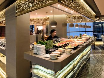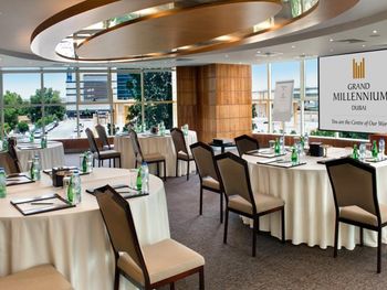 В отеле Grand Millennium работает несколько ресторанов и баров. На 19 этаже находится азиатский ресторан с открытой кухней и видом на Арабский залив и побережье Джумейры. В баре у бассейна предлагают легкие закуски и напитки.