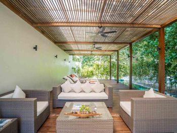 1. Номер. Мы бронировали бунгало с 2-мя спальнями и гостиной. Что получили: двухэтажный дом: на первом грязная, темная не уютная гостиная (по факту грязный диван и маленький обеденный дощатый столик со стульями) не пользовались гостиной ни разу, на втором - две маленькие спальни. Маленькие на столько что нет даже шкафа для одежды. Есть душ на улице, но несколько ночей шел дождь и спать невозможно из-за шумов из этого душа, плюс вода заливает в ванную комнату. В ванне отсутствует розетки! Отсутствует зеркало в полный рост. Нет мини-бара, все надо заказывать через ресепшн.