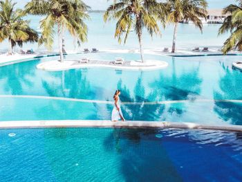 3. Пляжи. 2/3 острова не предназначены для купания: там камни и волны - катаются серферы. Есть центральный пляж у ресторана - но там бухта куда приходят все корабли на остров и далеко сплавать не получится. Пляж оборудован лежаками, есть пляжный бар, большой бассейн. Два бассейна слева от центрального пляжа - НЕ оборудованные ни лежаками, ни зонтами. Рифа как такового нет, есть небольшие кучки кораллов где плавают рыбки. Видели скатов, кальмаров, тунца, мудрен, Lion-fish. Рыбы есть - но для Мальдив бедновато.
