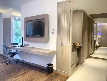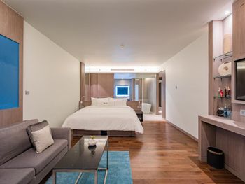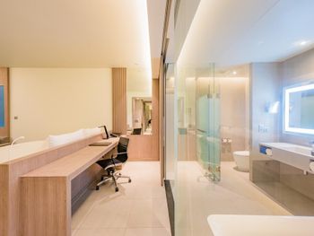Очень большая кровать, довольно удобно разделено пространство внутри комнаты. Визуально очень стильно и современно смотрится. Хорошие сытные завтраки. Всегда в изобилии разные напитки, мороженое, доброжелательный персонал.