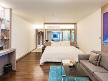 Отель находится на севере Патонга, до пляжа и Бангла-роуд можно добраться на отельном трансфере - ходит каждые 30 минут. В отеле несколько бассейнов, вокруг которых шезлонги и зонты - проблем с местами нет. Пляжные полотенца есть в номере. Сами номера просторные, оформленные в современном стиле, наш был с видом на океан, с большой лоджией. Завтраки сытные, большой выбор блюд. В отеле есть небольшой спортзал, тренажеров для кардиотренировок достаточно, для силовых тренировок полный набор гантелей, бутилированная вода без ограничений. Рядом с отелем обменник и 7/11. Персонал очень дружелюбный, всегда готов придти на помощь и быстро устранить проблемы в случае их возникновения. Очень понравилась девушка на рецепции (Кристина), доброжелательна и быстро решала все формальности при продлении проживания и выезде. В целом остались очень довольны проживанием в этом отеле.