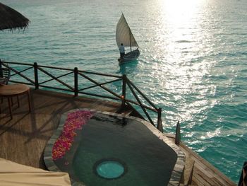 У нас была вилла со своим бассейном. Вилла очень просторна, 3-5 метров до океана. Но солнце было только до 12.00, потом уходило на другую сторону острова, куда нам и приходилось перемещаться, что не очень удобно. Но если вы не любите загорать, то ок. Хороший дайвинг центр. Красивый подводный мир. Видела морскую ярко жёлтую змею, поэтому осторожней. Жутковато вспоминать.