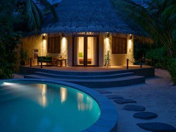 Наличие всевозможной живности как снаружи бунгало (виллы))), так и внутри. Мелкие бегающие курочки и ящерицы не в счет, с ними проблем особых нет, но вот комары, муравьи, пауки, змеи (!) заползающие в номер это как то "лишнее". В море временами начали появляться практически не заметные маленькие медузы, которые очень неприятно жалят и потом идет аллергическая реакция. Раньше подобные медузы мы встречали в Таиланде и во Вьетнаме, но на Мальдивах их не было. В отеле есть врач, у нее есть мазь и антигистаминные таблетки, в принципе помогают, но ощущения не из приятных. Сам номер (вилла делюкс !) по размеру не большой, но и не маленький, отделка практически отсутствует, крыша соломенная, стены покрашены но не оштукатурены, чем то напоминает мазанку, на полу страшная скользкая плитка. Сан.узел это настолько неряшливое и грязное помещение (вне помещения виллы) что заходить туда особо не хотелось. Питание дорогое, но это еще пол.беды, не вкусно, все очень острое, пережаренное и очень ограниченный выбор. Развлечений не много, за 11 ночей что мы провели на острове, ни разу не было ни одного тематического ужина или какого то выступления, даже конкурса типа крабьих бегов ни одного... Один раз брали в аренду пластиковые байдарки (72 usd за полчаса, за две). Персонал в целом просьбы не игнорирует, на все реагирует достаточно оперативно, вырубает автомат и выключается весь свет (раз 5 было) приходят включают, убирают не очень хорошо, но позвонишь попросишь полотенца и воду приносят быстро, со службой размещения тоже вопросов не возникало, могли бы конечно поздний выезд сделать бесплатным, но это не претензия конечно. В целом, за 500 usd в день за номер (HB) ожидаешь, более человеческих условий.