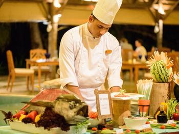 Обслуживание на троечку, персонал делал все необходимое, но все нужно было вытягивать. Организация экскурсий не очень хорошая, отбыли на рыбалку на 50 минут позже назначенного времени. Еда в общем ресторане очень скудная, нет морепродуктов, крайне мало фруктов, выбор еды печальный. Ол инклюзив очень относительный, за многое приходилось доплачивать. Пляжный бар работал с 17 до 20 только, слишком мало по времени. Цены на все очень высокие. Сходили в спа и заплатили по итогу в 2 раза дороже, потому что никто не предупредил даже, что скраб кокосом, который там повсюду будет стоить в два раза дороже, просто предложили этот вариант, думали входит в пакет, оказалось, что нет. Неприятно было.
