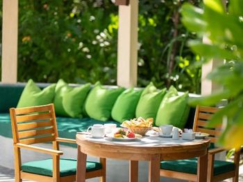 Дружелюбный персонал, красивый остров хороший отель. Хорошо подходит для спокойного пляжного отдыха. Отдыхали в конце января в трех виллах: сансет, водная и делюкс. Сансет вилла оказалась идеальным вариантом в это время года. Там очень красивый пляж и вы выходите из виллы прямо на него. Сама вилла достаточно свежая. Мы бы остались там на все дни. Но прямого обзора на океан нет, вам нужно пройти метров 20 из рощи с виллой на персональные лежаки. Водная вилла была с немного видавшим виды ремонтом, но нам лично это никак не мешало и мы не обращали на это внимания. На водной вилле есть свои плюсы в мгновенном доступе к воде и рыбах, которые приплывают к вечеру, в т.ч. постоянно проплывают рифовые небольшие акулы, черепахи и много другой рыбы. Это очень классное зрелище, особенно приятно понаблюдать перед сном, когда на воду светит подсветка. Причем днем рыбы практически не видно, поэтому даже если немного побаиваетесь акул (они не опасные), то днем они не беспокоят во время купания. Ну и делюкс вилла. На этой стороне значительно хуже пляж, т.к. разбивается волной, но замечу, что вы живете прямо на пляже и смотрите постоянно на океан (как и на водной вилле). При этом все-таки есть делюкс виллы, где участки пляжа не такие разбитые и все нормально. Тут как повезет. И еще здесь снорклинг зона, если любите такое, то это тоже плюс здесь. Питание на острове в целом нормальное. Разнообразная, за 10 дней не приелось. При этом надо понимать, что отелю сложно с логистикой, поэтому тут сложно обеспечить какую-то невероятно богатую кухню, как в каком-нибудь средиземноморском городе. И я просто призываю вас попробовать здесь мороженное, оно очень вкусное. На самом острове можно немного прогуляться, но основное - это пляж. Есть местный сад с овощами, где нас «атаковали» попугаи))) Есть питомник черепах, но он прямо небольшой, если любите истории про то как спасают животных, то можете послушать.