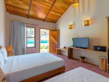 Daisy Resort предлагает разнообразие уникальных номеров, каждый из которых создан для того, чтобы обеспечить максимальный комфорт и уют. В Deluxe Sea View Bungalow вы сможете насладиться захватывающим видом на море из своего уюта площадью 40 квадратных метров с одной кроватью размера "queen". Для семейных путешествий идеально подойдут Family Garden View, где вас ждут две кровати размера "queen" в просторном 40-метровом бунгало с видом на сад. Если вы ищете романтику, Garden View Bungalow с одной кроватью размера "king" также предлагает 40 квадратных метров уединения и красоты природы. Для тех, кто предпочитает больше пространства, Hilltop Villa площадью 65 квадратных метров с двумя кроватями размера "king" станет отличным выбором. А Pool View Bungalow и Sea View Bungalow, каждый по 40 квадратных метров с одной кроватью размера "king" и "queen" соответственно, подарят вам незабываемые моменты отдыха на фоне живописных видов.