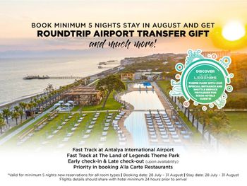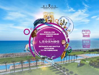 Насладитесь великолепным сервисом в Rixos Premium Belek - The Land of Legends AccessЭтот 5-звездочный курортный отель площадью 405 000 кв. м с собственным пляжем протяженностью 700 метров расположен в Белеке. На территории курортного отеля работает спа-центр, тренажерный зал и торговый центр. Во время проживания гости могут воспользоваться специальным трансфером и входом в парк аттракционов The Land Of Legends («Земля Легенд»).