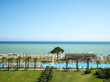 Во-первых, везде очень грязно, начиная от пола в номере, заканчивая детскими столиками в ресторане. Причём, персонал абсолютно игнорирует просьбы об уборке. Ножки ребёнка, который по номеру бегал босиком, моментально становились чёрными, причём даже сразу после уборки. А это значит, что во всем отеле царит антисанитария. Во-вторых, будьте готовы к наплевательскому отношению персонала, зачастую не говорящему ни на каком языке кроме турецкого. Знание вами английского и русского вам не поможет. В день заезда нам поставили в номер какой-то протухший букет, наверное, это традиции такие. Выход к бассейну из нашей виллы был через... грязь. Ну то есть, везде газон, а у порога прямо метра три грязи, не обойти, не перепрыгнуть. Ни один из ресторанов не приспособлен для передвижения с коляской, везде лестницы. Качество еды запредельно низкое, мясо и рыба сухие, пережаренные, пересоленные либо совсем не солёные, паста разваренная, выбор фруктов на грани прожиточного минимума. A la carte рестораны вообще фикция, то же унизительное качество еды, только с убогим обслуживанием. С алкоголем всё ещё хуже, дешевое чилийское вино за 300 рублей, крепкий алкоголь без имени и бармены, совершенно не умеющие делать какие-либо коктейли. Несмотря на то, что пляж песчаный, вход в море через гальку, неровный, с обрывами, иногда попадались булыжники размером с голову, за пляжем не следят совершенно. Лежаки постоянно забиты все. В общем, гостиница никак не пятизвездочная, да и по соотношению цена/качество просто за гранью добра и зла.