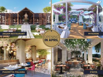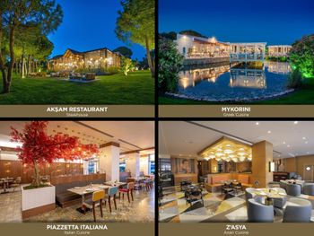 В курортном отеле работает стейк-хаус, а также рестораны изысканной кухни, где по меню предлагаются блюда итальянской, турецкой и интернациональной кухни, а также блюда из морепродуктов. В 8 барах курортного отеля можно заказать экзотические коктейли, марочные вина и полезные для здоровья коктейли из фруктов. Гости с детьми могут посетить ресторан Yummy, где предлагается детское меню на обед.