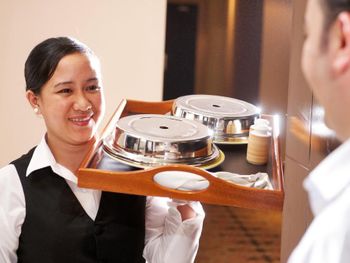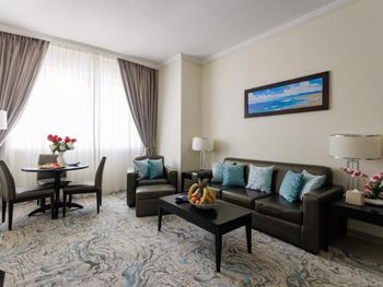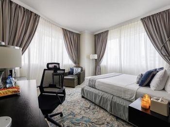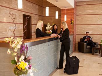 Красивое здание, фойе. Работники вежливые и говорят на английском. Донесли сумки до номера. Вызвали такси утром. Отвечали на телефон по всем вопросам. Была бесплатная вода, чай, кофе.