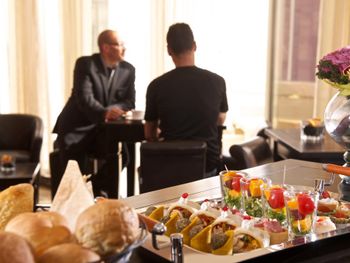 Гости могут поужинать в ресторане International, где подают разнообразные фирменные блюда арабской и интернациональной кухни. Кушанья сервируют по меню или в виде "шведского стола", производится круглосуточное обслуживание номеров.