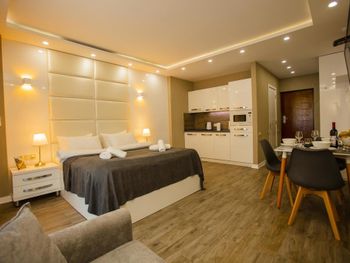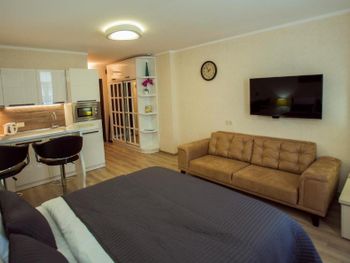 Очень уютные апартаменты - есть самое необходимое для проживания , даже стиральная машинка. Все очень чисто. Заселяла милая девушка администратор - спасибо Лике за пунктуальность и гостеприимство. Расположение здание - идеально - 2 минуты и море. А какой вид на море и закат с балкона - супер Спасибо большое Вернемся обязательно и будем рекомендовать смело