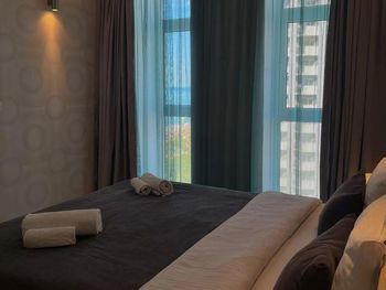 Спасибо за радушие и доброжелательность! Администратор всегда была на связи и помогала с любыми вопросами/просьбами. Организовали трансфер из аэропорта. Заселились быстро, местоположение очень удачное, не было стройки и ничего не светило в окна (как бывало в других апартаментах) Уборку необходимо заказывать и оставлять ключи клинерам. Жили на 25 этаже , мебель, постель были чистыми. Посуды было много, чай, кофе в ассортименте. Вернемся еще раз обязательно. Спасибо!