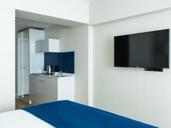 Отель не понравился. Внешне выглядит красиво, но внутри совершенно не соответствует ожиданиям. Во-первых, адрес на букинге не соответствует фактическому - разница в одной букве (дом 7 и 7Д) заставляет плутать в строящихся корпусах по дорогам на которых снуют машины, а тротуаров мало. Во-вторых, нас поселили в номер с текущей душевой кабиной и плесенью на потолке. Оттуда мы сразу выселились и нас переселили в другой номер. Он был лучше первого, но - сидение унитаза сломалось, от чайника отвалилась крышка, всё держится еле-еле. Кровати жесткие, стиральной машины нет, хотя заявлена была. Коридоры в отеле с низкими потолками и душные. Половина лифтов не работает и едут они долго. У лифта разбито стекло на 11 этаже, лампочки не работают или моргают. Уборка производится не каждый день, а только по вызову.