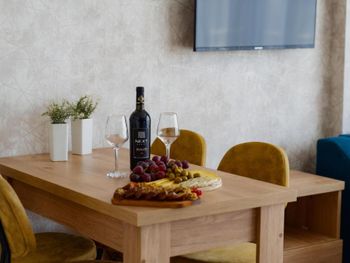 Расположение, красивый интерьер, чистота. Есть столовые приборы,плита. Можно приготовить еду самостоятельно.