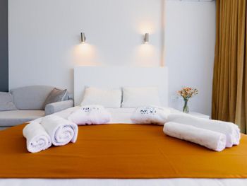 Быстро заселились, было чисто. От моря близко. С балкона красивый вид . Хозяева приготовили по бутылке воды, чай,кофе,сахар.