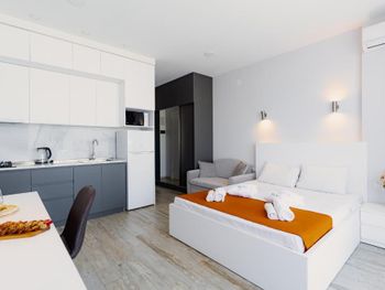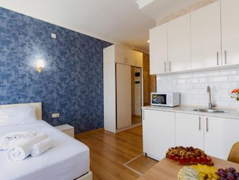 Отличное место расположения. В двух шагах набережная, а также магазины продуктов (как небольшие местечковые, так и крупные супермаркеты), кофейня и несколько ресторанов. Но это не старая часть города, хотя до нее легко можно прогуляться по набережной. Здание новое, соответственно и апартаменты свежие, полностью оснащенные посудой и базовой бытовой техникой (небольшая плита, стиральная машина, чайник). Идеальное место, если вы хотите пожить "как дома", "как местный", при этом уборку, замену полотенец и туалетных принадлежностей вам произведут по запросу.