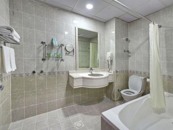 Отличный номер. Большой. В номере утюг и доска. Фен маломощный. Гель для душа и шампунь пополняли каждый день. До пляжа 5 минут.