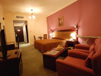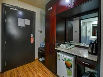 Просторная комната,кондиционер хороший,уборка тщательная,персонал приветливый.В номере холодильник,чайник с чаем/кофе, бесплатная вода-2 бутылки в день,гладильная доска с утюгом.