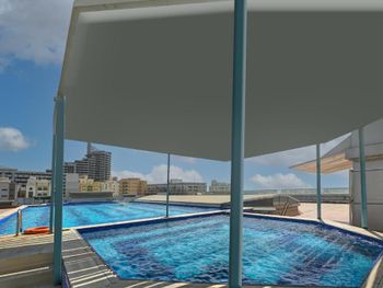Отличное расположение отеля, просторные и комфортные номера, холодильник и чайник, дружелюбный персонал отеля, огромный бассейн на крыше отеля и подземная парковка.