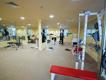 Грязные сырые номера, которые требуют ремонта. Потолок в ванне от сырости почернел, ванная потрескана. Ремонт по этой гостинице давно плачет. Мебель грязная, что не приятно садиться. Ковролин весь в пятнах. Тренажёрный зал тоже желает лучшего. Все тренажёры поломаны, кондиционера нет. Отель стоит возле дороги, на окнах нет уплотнительных резинок, складывается ощущение что спишь на остановке. На подземном паркинге реставрируют мебель, в связи с чем, дико воняет краской.