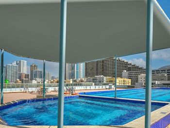 До моря автобус с 3-мя остановками на выбор,хотя море и в пешей доступности, но пляжи в Шардже своеобразны: вроде и море кругом,да не везде доступ есть. Рядом неплохой ресторан,кафе с арабскими сладостями,небольшой продуктовый магазин. Подземная парковка.