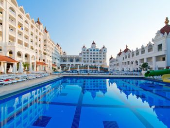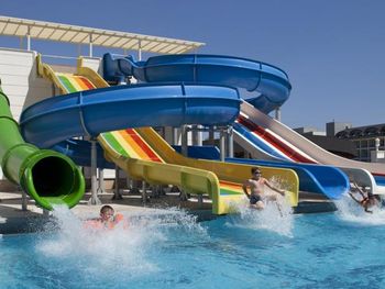 Красивый большой отель. На территории открытый бассейн и горки. Бесплатные сауна, хаммам, крытый бассейн, фитнес центр. Голодным не останешься, кроме завтраков , обедов и ужинов можно перекусить у бассейна и на пляже. Бары работают во всех локациях, намешают всего, что попросите. Вечером анимация. Огромный плюс - собственный пляж в минуте ходьбы от отеля! Пологий вход в море, песок. На территории отеля есть магазин. Вечером работает ночной клуб.