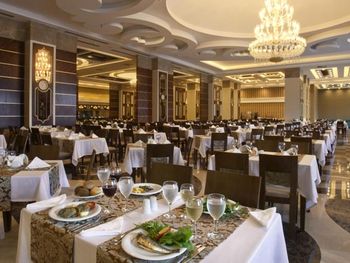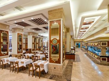 Впервые отдыхал в отеле (18-27 мая 2016г), где большинство турки (>85%) и практически нет русских. И это отлично! Пляж - пустынный по сравнению с соседними отелями, где большинство - немцы. Отель постоянно проводит какие-то конференции. В обед встречаются мужики в костюмах в белой рубашке с галстуком и отдыхающие в шортах. Команда поваров - просто кудесники. Завтрак - так себе. А вот обед и ужин - это супер! Попробовать все просто невозможно. Отлично у них получались: речная форель и морской окунь на гриле, маленькие кебабики, мясо ягненка, ростбиф, куропатки на гриле, рулет из вяленого мяса (типа бастурмы). До сладкого стола редко доходил. Все сразу попробовать было просто невозможно. Номер был с видом на соседний отель Sungate, где вечерами играла местная джаз-банда. Было приятно пить чай на балконе и слушать местного слегка гнусавого гитариста.