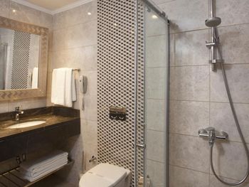 Не понравилось частое отключение электричества, один раз застали отключение в лифте на последнем этаже, неприятно тем более, что лифт стеклянный и в нем мало воздуха и душно. В ресторанах A la carte медленное обслуживание, также в общем ресторане иногда приходилось вылавливать официанта, чтобы попросить напитки. Были также некоторые проблемы с уборкой, несколько дней не приносили в номер туалетную бумагу и гели для душа, на трещит день не выдержали решили караулить уборщика )он конечно нам все выдал, когда мы попросили, но все таки надо бы каждый день проверять наличие необходимых принадлежностей в номере. Так же были проблемы с прачечной, собрали мешок, который обычно уборка забирает из номера, но у нас два дня никто его не замечал, пытались отдать уборщика, он понимал только по-турецки, и только на третий день выловили мини-баршика, он помог, позвонил кому-то тогда пришли забрали. По выселению выставили большой счет в 70 $ за телефон, хотя рецепционист говорил, что минута стоит около доллара, ну и конечно мы не проговорили 70 минут, но пришлось заплатить, т.к. ждал трансфер и не было времени выяснять. В ванной комнате немного протекала душевая кабина