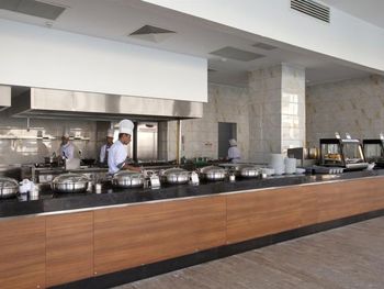 Безобразное обслуживание во всех ресторанах отеля. Ленивые официанты, вечно грязные тряпки на столах вместо скатерти, горы грязной посуды на столе стоят по 15-20 минут после того как люди закончили есть, а чтобы официант убрал посуду пока ты ещё не закончил трапезу- это просто фантастика... На ужине дождаться бокала вина невозможно и люди стоят в очереди к тумбочке с вином "самообслуживание"!!! Ресторан Аля Кард это вообще песня - туда точно не надо...