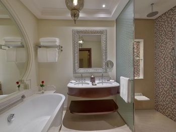 Курортный отель Ajman Saray располагает 205 просторными номерами и люксами с захватывающим дух видом на Персидский залив и морской рукав Хор-Дубай. Во всех номерах есть балкон, телевизор с плоским экраном и док-станция для iPod. В люксе обустроена гостиная с обеденной зоной. В ванной комнате установлены ванна и душ.