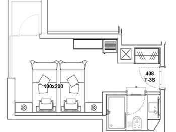 Нам дали маленький номер 11метров. И проходом 40см между кроватью и столом.