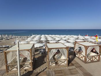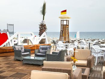 Напитки, лежаки и зонтики на пляже, удобно.
