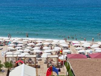 Одно из лучших расположений в центре Аланьи с прямым выходом на пляж Клеопатра. Между отелем и морем только пляж. Проезжая дорога с обратной стороны отеля. Прямой вид на море из номера.
