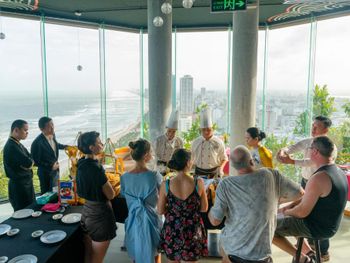 Отличный отель в шаговой доступности до пляжа Питание на 4 снизил балл из за того что в основном гости из Китая и Кореи Очень много блюд для моего желудка неприемлемы Бассейн на 25 этаже Интересный интерьер Отличный вид на город и море