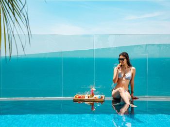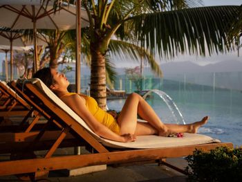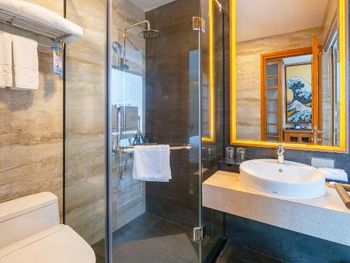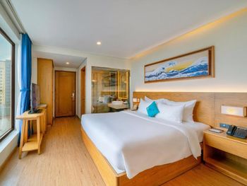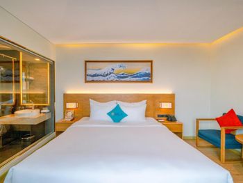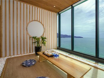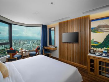 Очень понравился номер. Мы снимали SALA Suite with Balcony and Sea View. Огромная удобная кровать, много места где можно посидеть и полежать. Хороший вид из окна, хотя часть закрывается другим отелем, так наш отель находятся на второй линии, но при этом открывается отличный вид на оставшуюся набережную в сторону статуи Леди Будды. Огромная ванная комната с душем и ванной, и даже там есть окошко с видом на набережную. Есть все необходимые гигиенические средства. Завтраки разнообразные. Если брать более дорогой номер, то будет возможность завтракать в отдельном зале, где будет гораздо меньше других постояльцев отеля. Выбранный нами номер был как раз таким. На крыше есть бассейн с баром, который может с легкостью заменить походы на пляж. Там же есть ресторан. У отеля есть собственная подземная парковка, на которой можно оставить взятый в аренду скутер.
